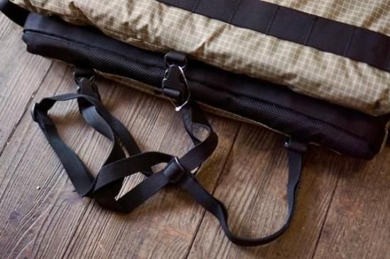収納時に邪魔にならないように背中側の腰の部分にクロッチベルトの収納ポケットがあります。